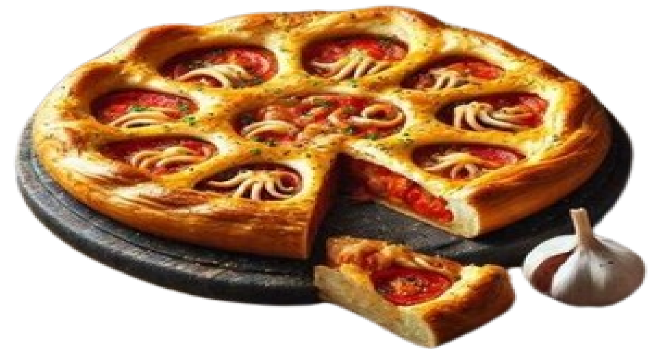 C'est une tourte méditerranéenne à base de poulpe épicé et de sauce tomate.Tielle_Setoise-removebg-preview